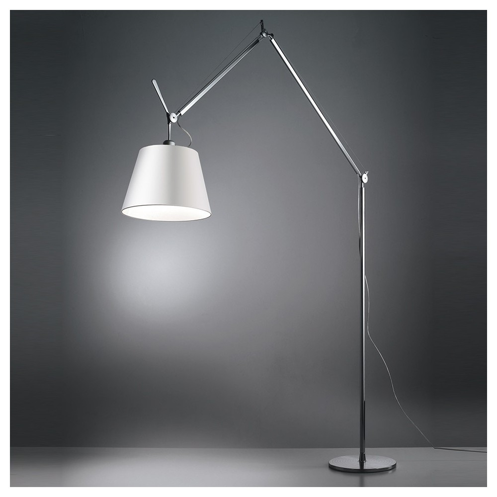 Lampada da parete moderna in alluminio lucidato e diffusore in alluminio opaco.